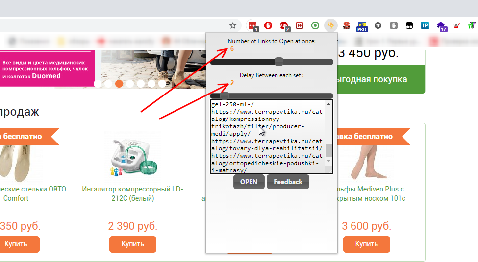 А пока коротко расскажем про один очень хороший помощник – плагин Multilink для Google Chrome. Задача этого плагина состоит в том, чтобы «за один заход» открыть сразу несколько страниц. Т.е. вставляем страницы списком, корректируем размер «порций» и интервалов их выдачи и запускаем. В данном случае УРЛы будут открываться «порциями» по 6 штук с интервалом в 2 секунды.