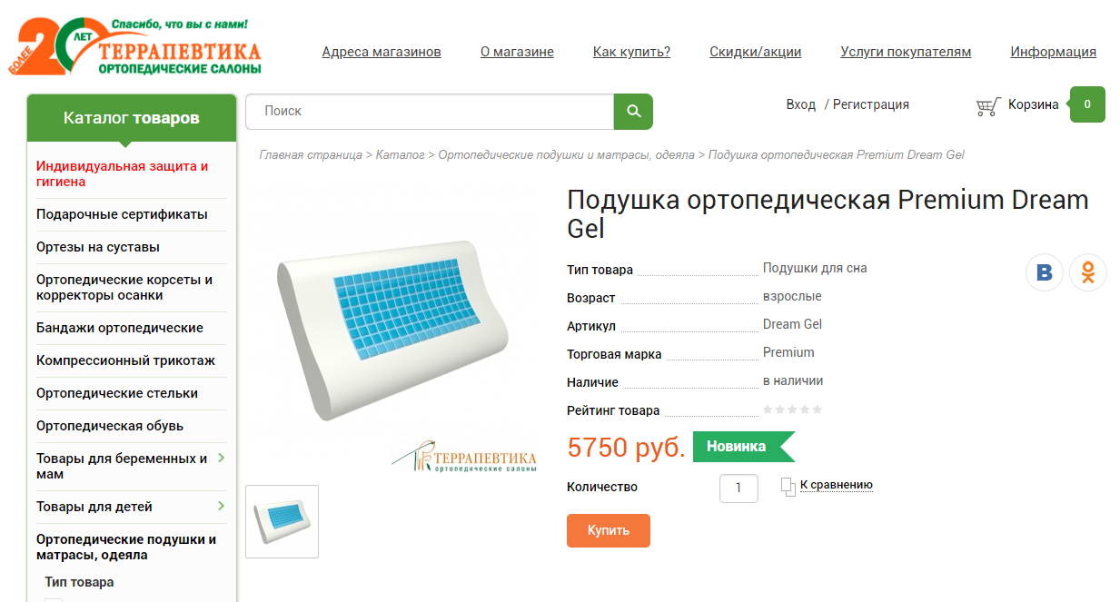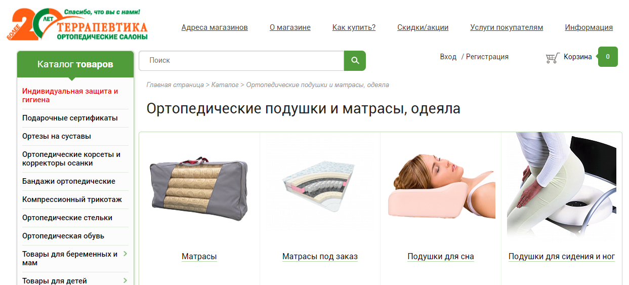 Имеем сайт www.terrapevtika.ru – это наш клиент. Данный сайт представляет собой интернет-магазин ортопедических товаров – ортопедическая обувь, стельки, компрессионный трикотаж, бандажи и т.д.