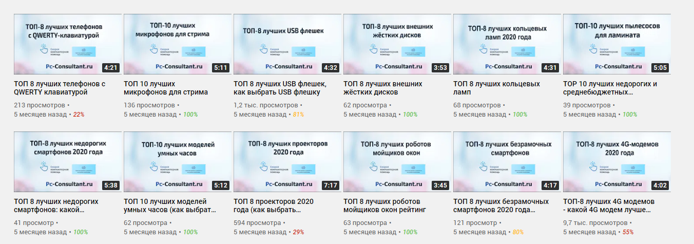 Последние опубликованные видео – это ТОПы, т.е. ТОП-5 [чего-то там].