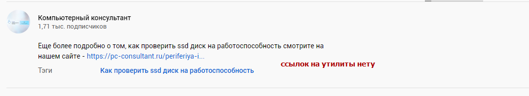 Отлично, супер, класс! Автор канала рассказывает о том, как проверить SSD на работоспособность, но при этом даже не имеет SSD в собственном ПК! И это подтверждается одним из следующих скриншотов: