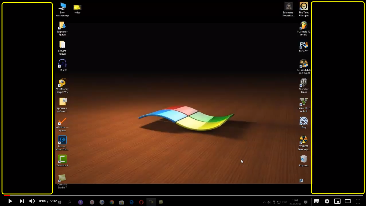 Вот только непонятно, почему рабочий стол «квадратный», а видео – широкоформатное? НАФИГА?