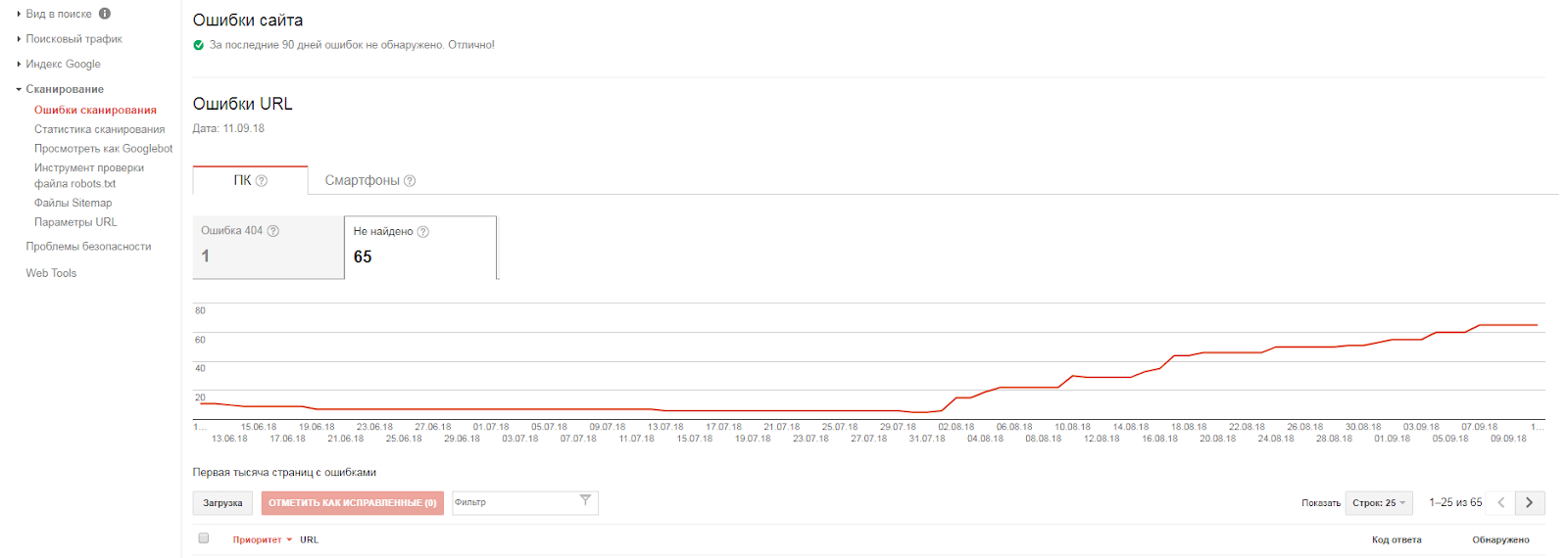 Начнем с Google Search Console. Разумеется, мы не будем говорить, что нужно в ней зарегистрировать Ваш сайт, потому что это и так понятно. Важно другое – информация о битых ссылках будет Вам доступна только, если: