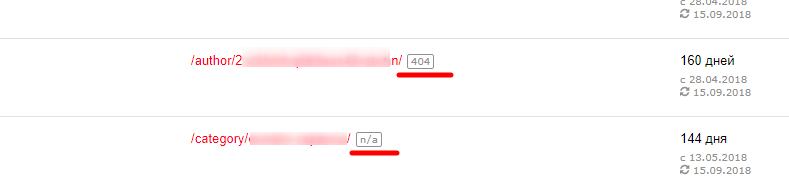 Обратите внимание, что битые ссылки помечаются кодом 404, а закрытые от индексирования – n/a.