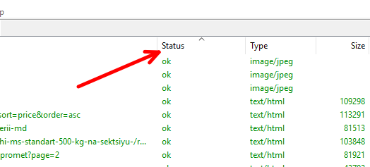 Все битые ссылки окажутся в самом верху (а если кликните на заголовок столбца еще раз – они окажутся внизу).