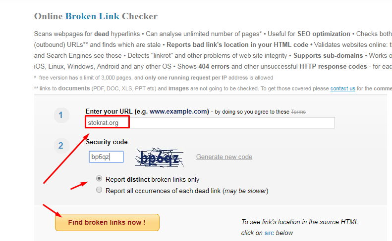 Проверка битых ссылок онлайн-сервисом Broken Link Checker