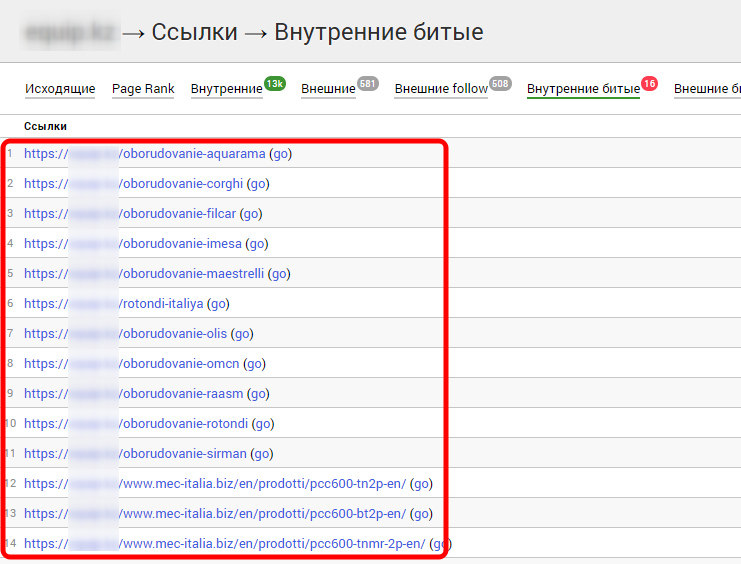В верхнем положении сервис просто покажет список ссылок, которые нужно исправить.