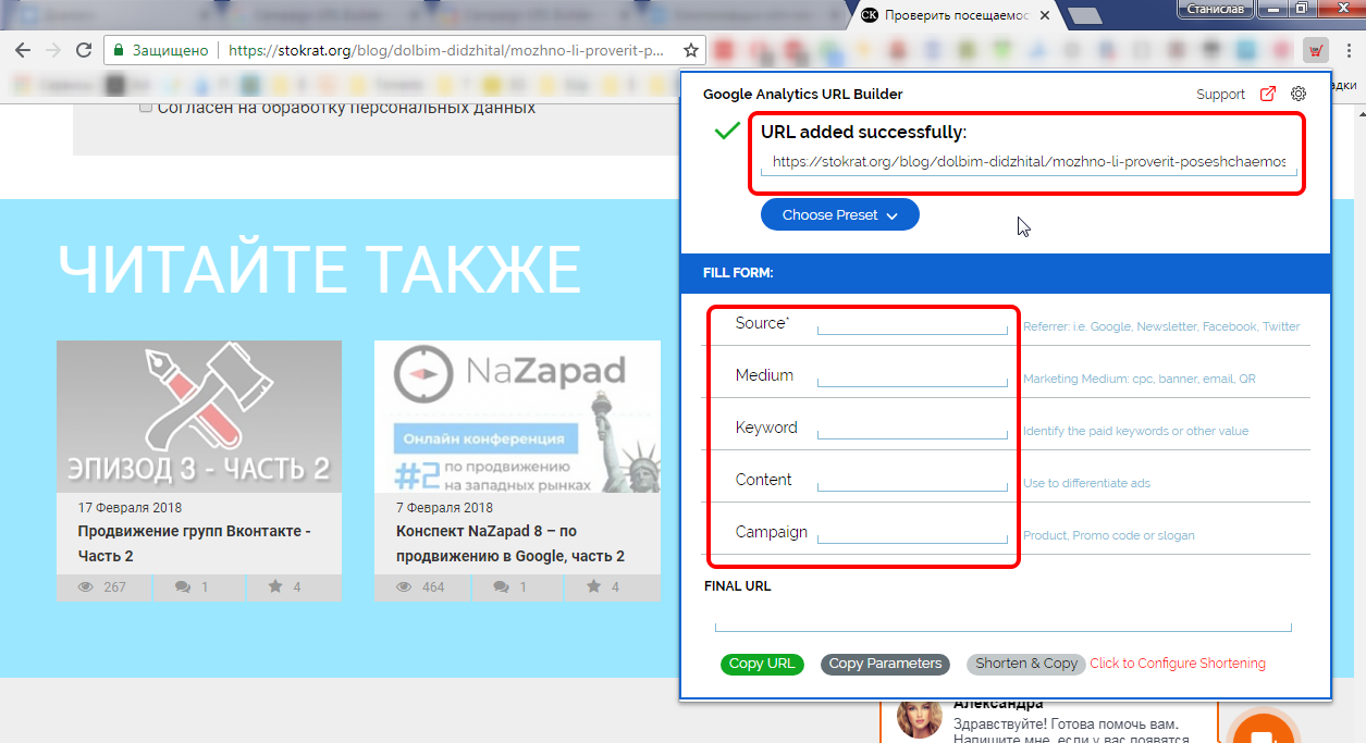 Расширение Google Analytics URL Builder для браузера Chrome– по сути то же самое, только «исходный» УРЛ автоматически берется из адресной строки.