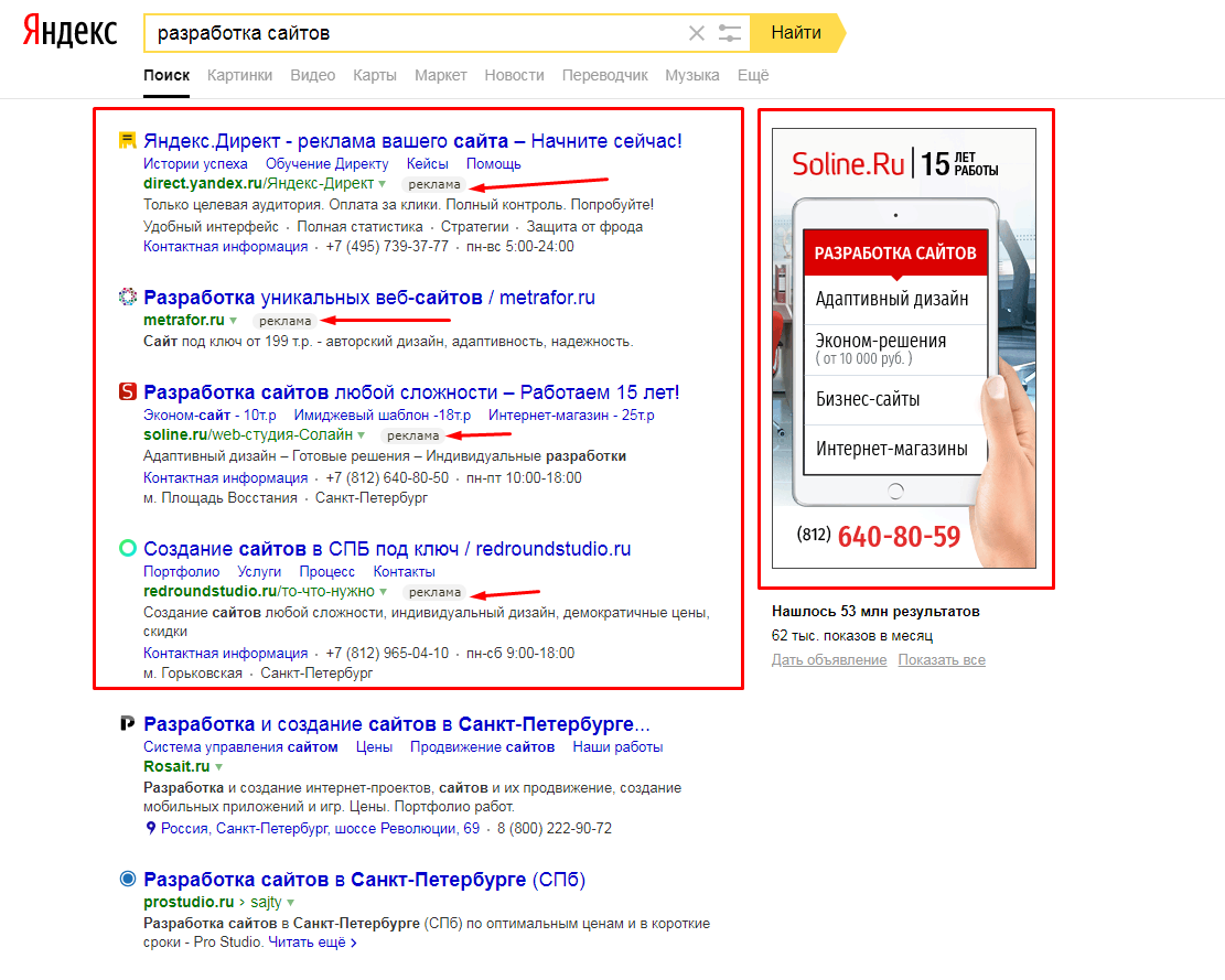 - В поисковой выдаче на самых первых строчках будут именно контекстные объявления, и только потом ТОП-10;