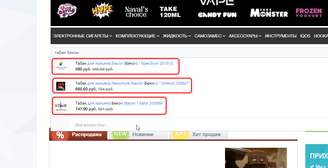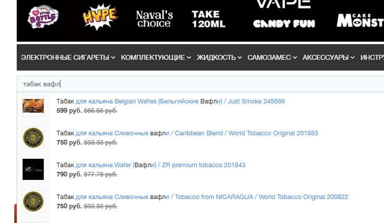 Пруф 1 – в магазине предостаточно табаков со вкусом вафли, чтобы выделить данный ключ в отдельную логическую группу для дополнительной страницы: