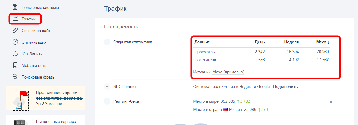 Анализ и проверка посещаемости сайта онлайн