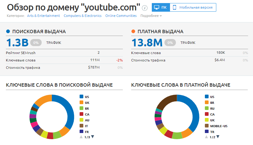 - процент десктопного и мобильного трафика;