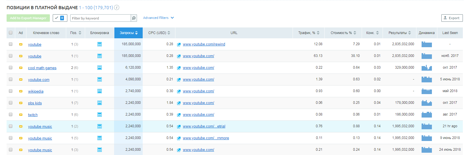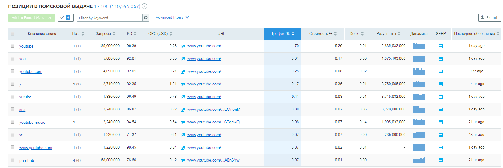2. Сколько трафика привлечено по топ-ключевым словам, а в качестве бонуса – примерная оценка стоимости и динамика.