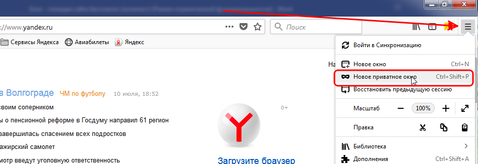 - в браузере Mozilla Firefox достаточно воспользоваться сочетанием клавиш Ctrl+Shift+P, либо зайти в Меню — Инструменты — Начать приватный просмотр (для старых версий), либо Меню – Новое приватное окно;