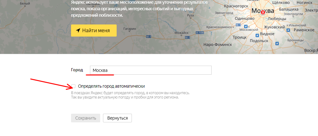 Обратите внимание, что если регион продвижения сайта не совпадает с регионом Вашего местоположения, то его нужно задать вручную (см. скриншот выше), плюс на всякий случай снять галочку «Определять город автоматически».