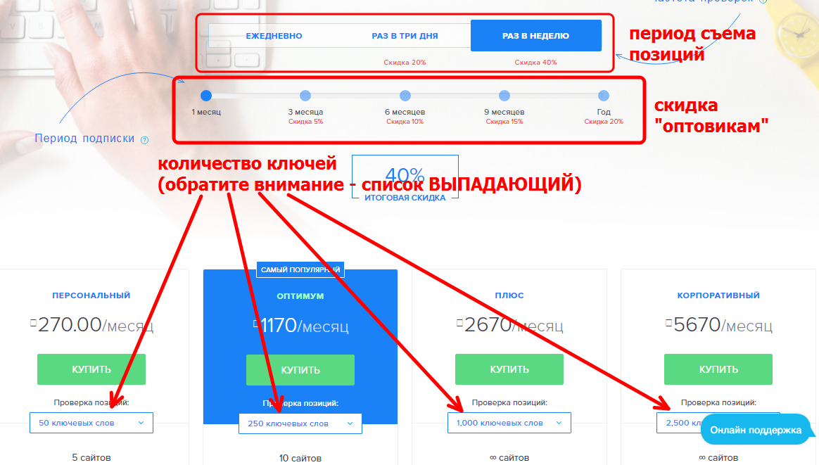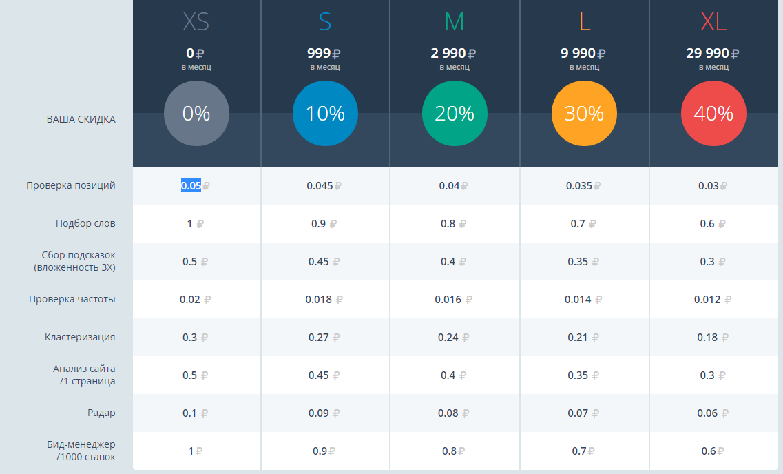 - от количества ключевых слов в списке (чем больше ключей – тем выше стоимость подписки).