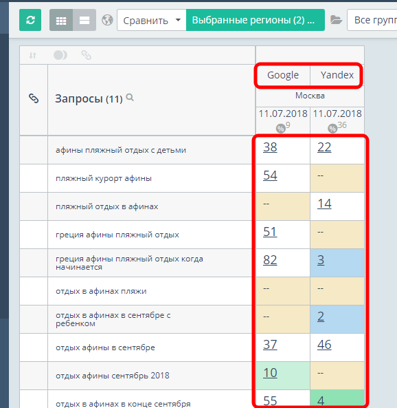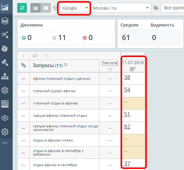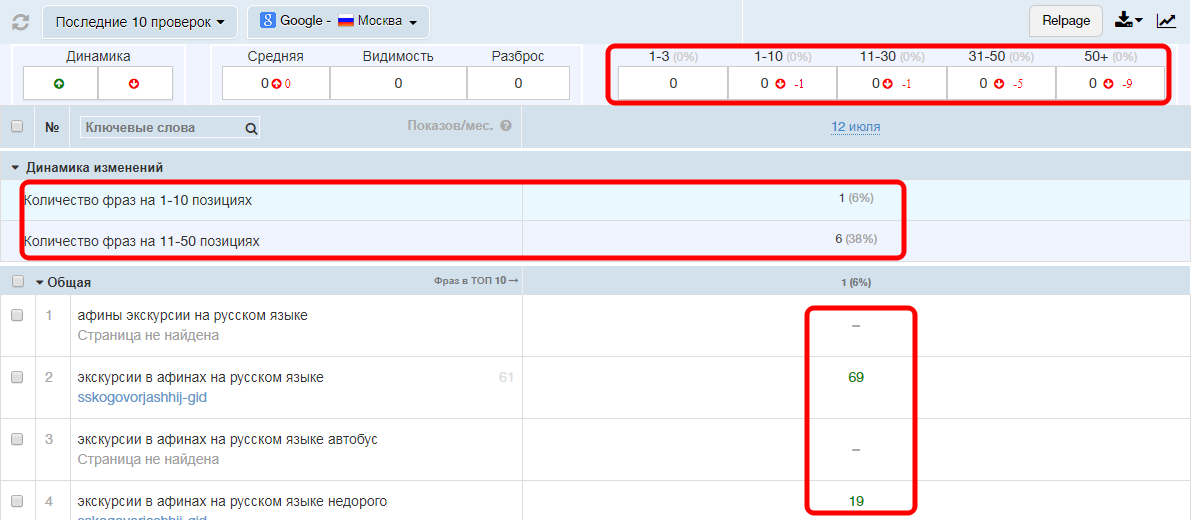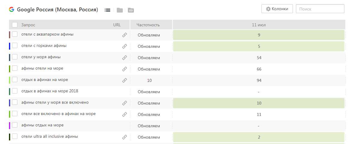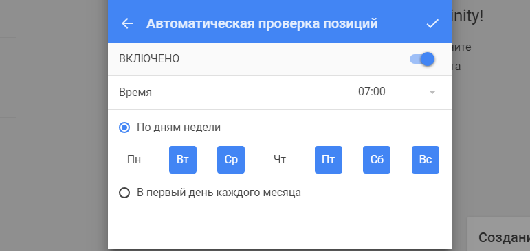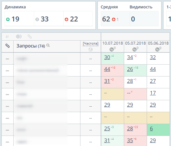 - период съема позиций (ежедневно, еженедельно, 1 раз в 3 дня) – по нашей практике можно смело сказать, что еженедельного съема позиций хватает «за глаза»;