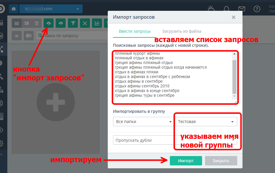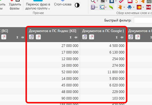 Либо, как альтернатива, спарсить ключи из Яндекс.Wordstat, сервиса Rookee, ну и про поисковые подсказки Яндекса и Google тоже не забываем.