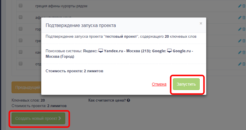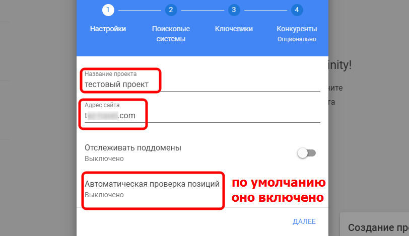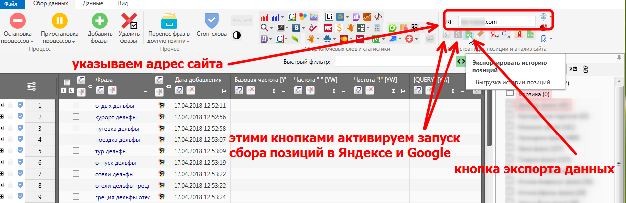 Теперь указываем адрес сайта и запускаем сбор позиций по Google и Яндексу.