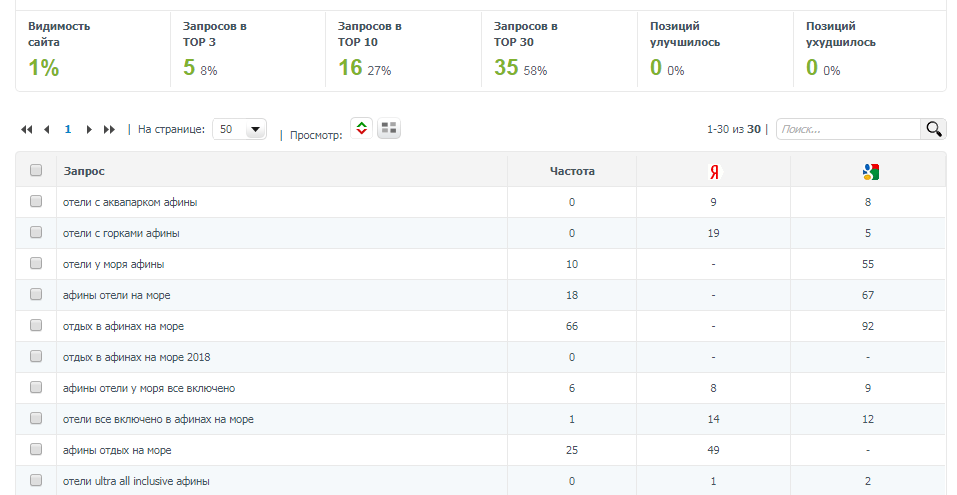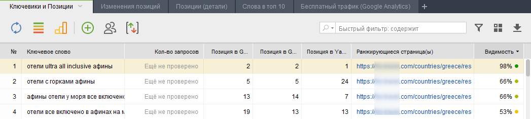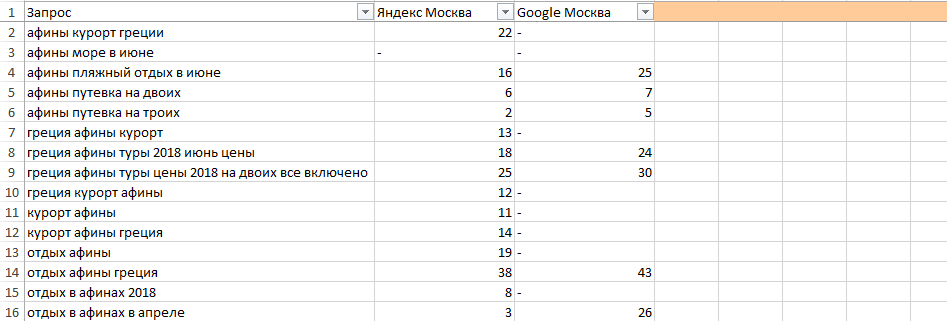 Основной минус такого метода мониторинга позиций состоит в том, что в таблице может не оказаться интересующих Вас запросов.
