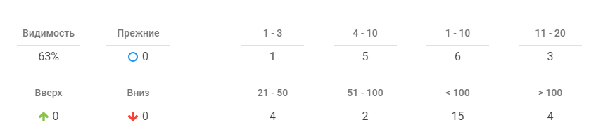 Т.е. мы получили сами позиции, адреса релевантных страниц и процент видимости сайта по каждому запросу.