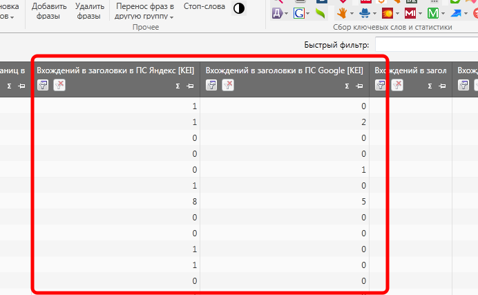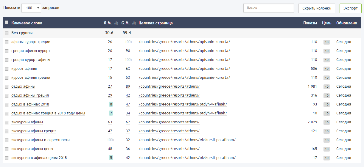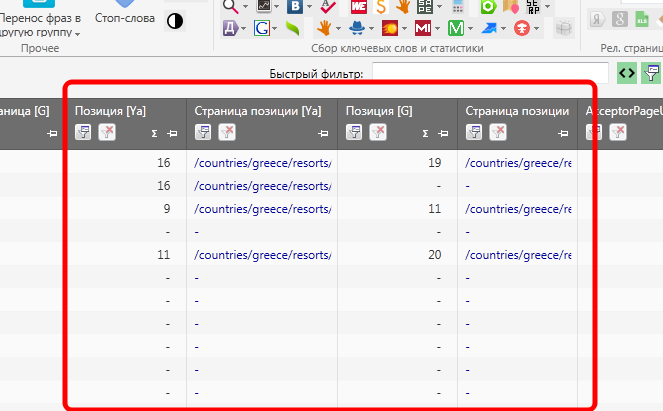 В-пятых, сопроводительная информация зачастую помогает понять, насколько правильно было скластеризованно семантическое ядро. Т.е. если страница вышла в ТОП-10 по 10 запросам из 12, а оставшиеся 2 не попали даже в ТОП-50 (но попали в ТОП-100), то не исключено, что под эти 2 запроса необходимо либо создать дополнительную страницу, либо затачивать другую. Мелочь, а крайне важна.