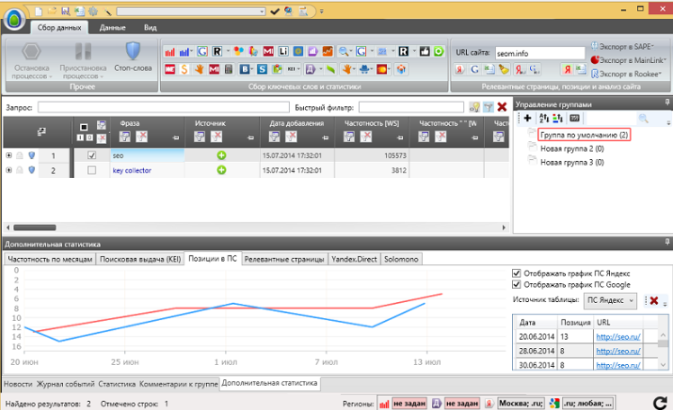 Просто отметим, что в KeyCollector’е съем позиций производится бесплатно. Т.е. покупаете пожизненную лицензию за 1900р и в будущем съем позиций будете производить абсолютно бесплатно.