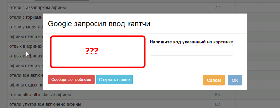 Нажимаем «Завершить» и ждем, когда программа закончит сбор позиций. Точнее не только ждем, но и вводим рекапчу. Кто не в теме, рекапча – это капча от Google, где нужно не вводить число с картинки, а выбирать картинки, например, с автомобилями, дорожными знаками и т.д. Готовьтесь к тому, что Рекапча попортит Вам немало нервов (зато платить не нужно). Это связано с тем, что в бесплатной версии отсутствует так называемый «безопасный» режим.