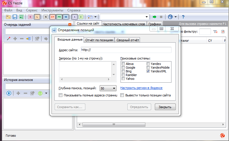 И если KeyCollector нацелен на работу с семантическим ядром, то Yazzle – больше заточен под анализ сайта.