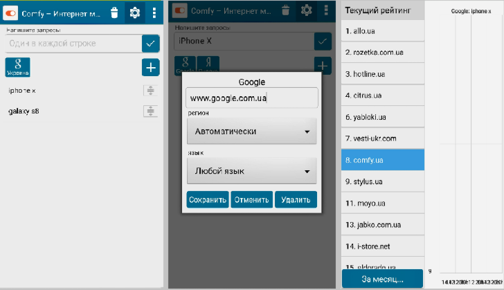 SEO Tool — (для Apple- устройств) собрат приложений выше. Неплохое приложение для мониторинга позиций в поисковых системах, которые популярны в России и странах бывшего СНГ – Яндекс, Google, Mail, и других.