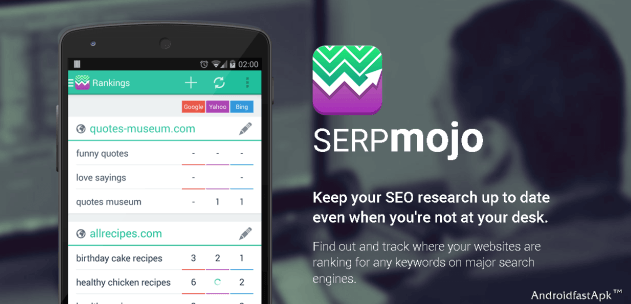 SEO Serp Mojo (на Android) предоставляет возможность проверять неограниченное количество ключей, URL, а также мониторить динамику ранжирования по всем отслеживаемым ключам. Приложение работает с Google, Bing, Yahoo/ Последние две на рынке СНГ популярностью, увы, не пользуются.