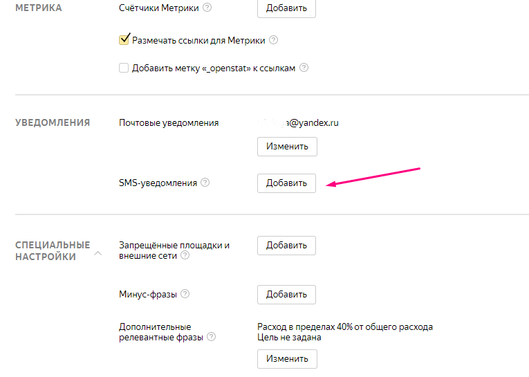 Одна из них – уведомления от Яндекса. Например, уведомление о состоянии счета (как по СМС, так и на почту), о ходе кампании, и т.д. Расходы на рассылку Яндекс берет на себя.