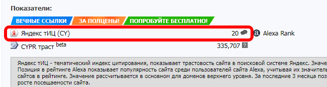 Данная величина является открытой информацией, которая добывается прямо из Яндекса. Работает это примерно вот так: «Яндекс, подскажи тИЦ вот этого сайта» - «20». Это как раз тот случай, когда не нужно пользоваться десятками сервисов для проверки достоверности (чего нельзя сказать, например, про траст и ссылки).