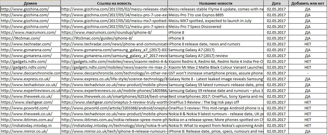 - Дата – это время, когда «паук» обнаружил свежую новость.