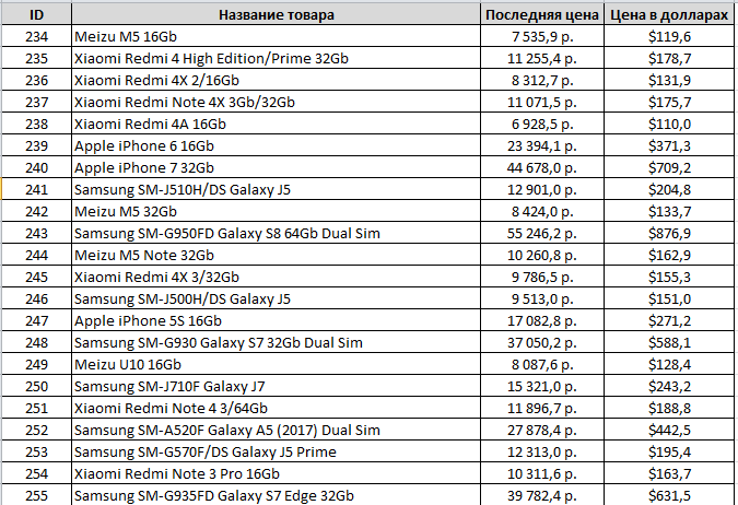 Сводка такого рода таблиц ежедневно присылается клиенту на почту, чтобы менеджеры могли видеть, что на некоторых товарах нам необходимо изменить цены и некоторые позиции добавить на сайт. Следует также отметить, что письмо приходит не со всеми товарами, что есть в базе, а только с теми, по которым у клиента неадекватная конкуренция по цене.