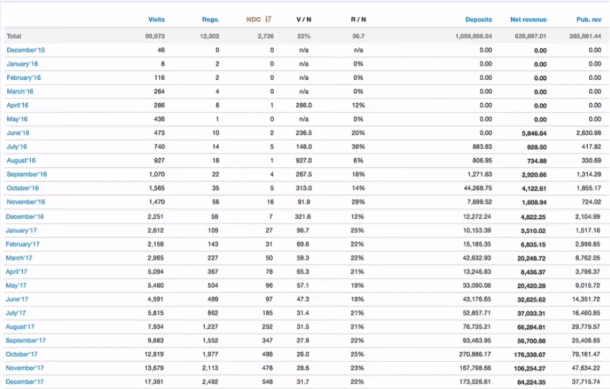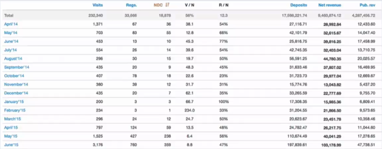 - Отслеживание конверсии и изменение брендов в топе, т.к. если каждый месяц проводить анализ (что конвертит, что не конвертит) – результат каждый раз будет разным. NGR на каждого игрока так же каждый раз будет координально отличаться, т.е. это тоже нужно отслеживать.